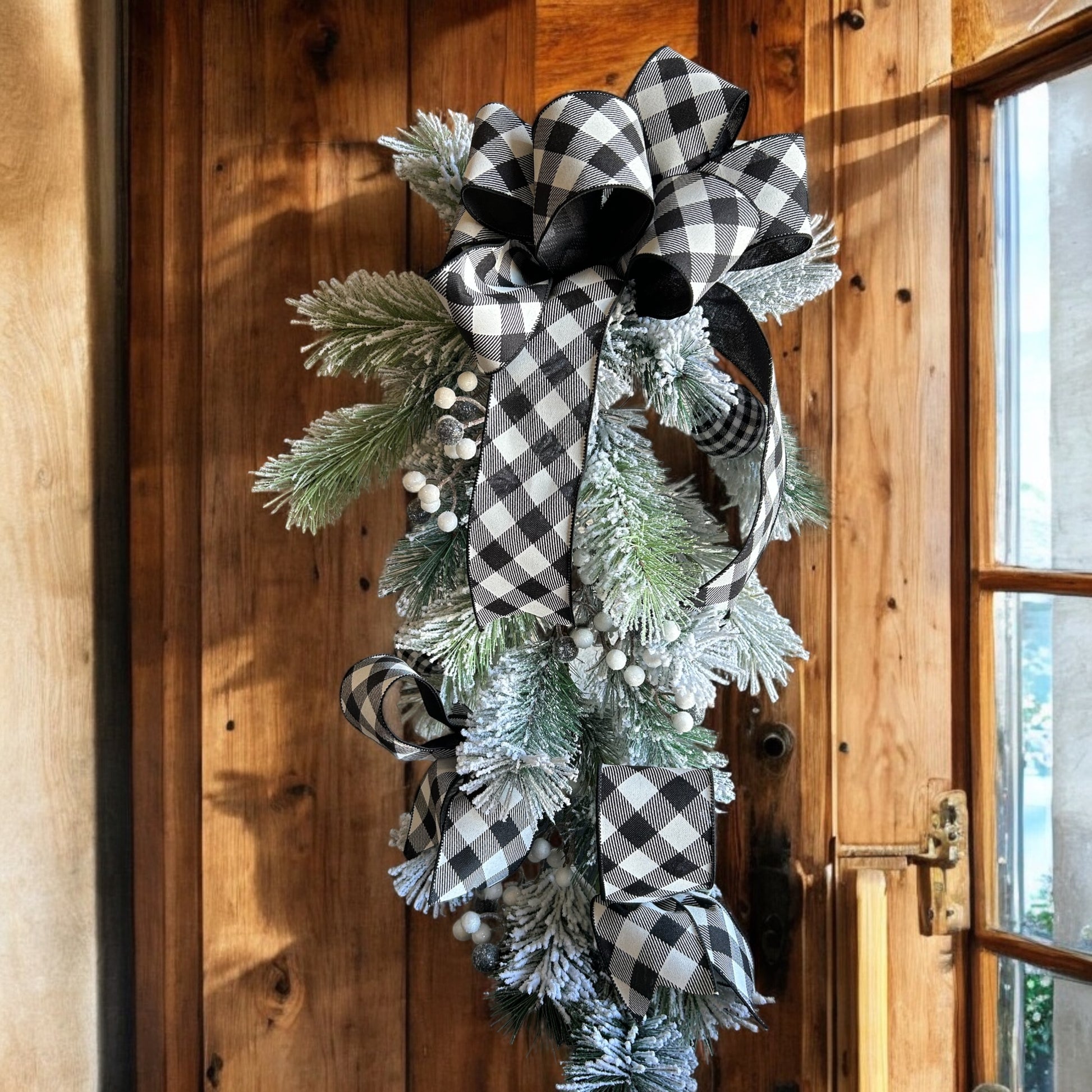 Welcome guests with this charming green home decor piece, beautifully accented with black and white ribbon detailing. Perfect for your front door, this stylish accessory adds instant curb appeal and sets a welcoming tone for your home. The fresh green hue brings natural warmth while the classic ribbon trim introduces sophisticated contrast, creating a polished, intentional look. Whether you're refreshing your entryway for the season or adding a personal touch year-round, this piece combines elegance with approachability. Transform your front door into a reflection of your style—a simple yet impactful way to make a great first impression and create an inviting atmosphere for everyone who visits.