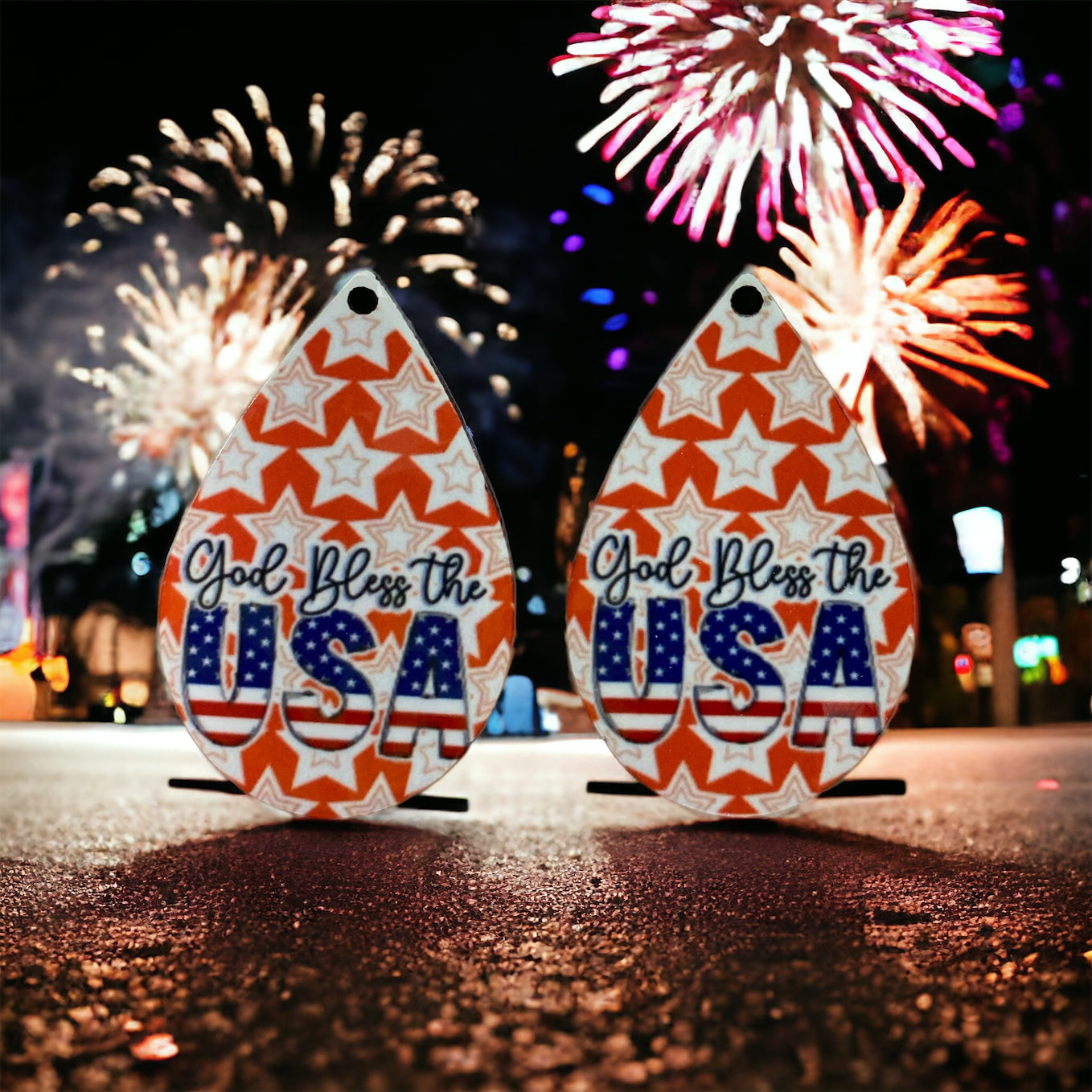Show your patriotic spirit with these stunning "God Bless the USA" hoop earrings. Made with high-quality materials, these earrings are both stylish and meaningful. Perfect for any occasion, they make a great gift for yourself or a loved one. Show your love for your country and add these earrings to your collection today!