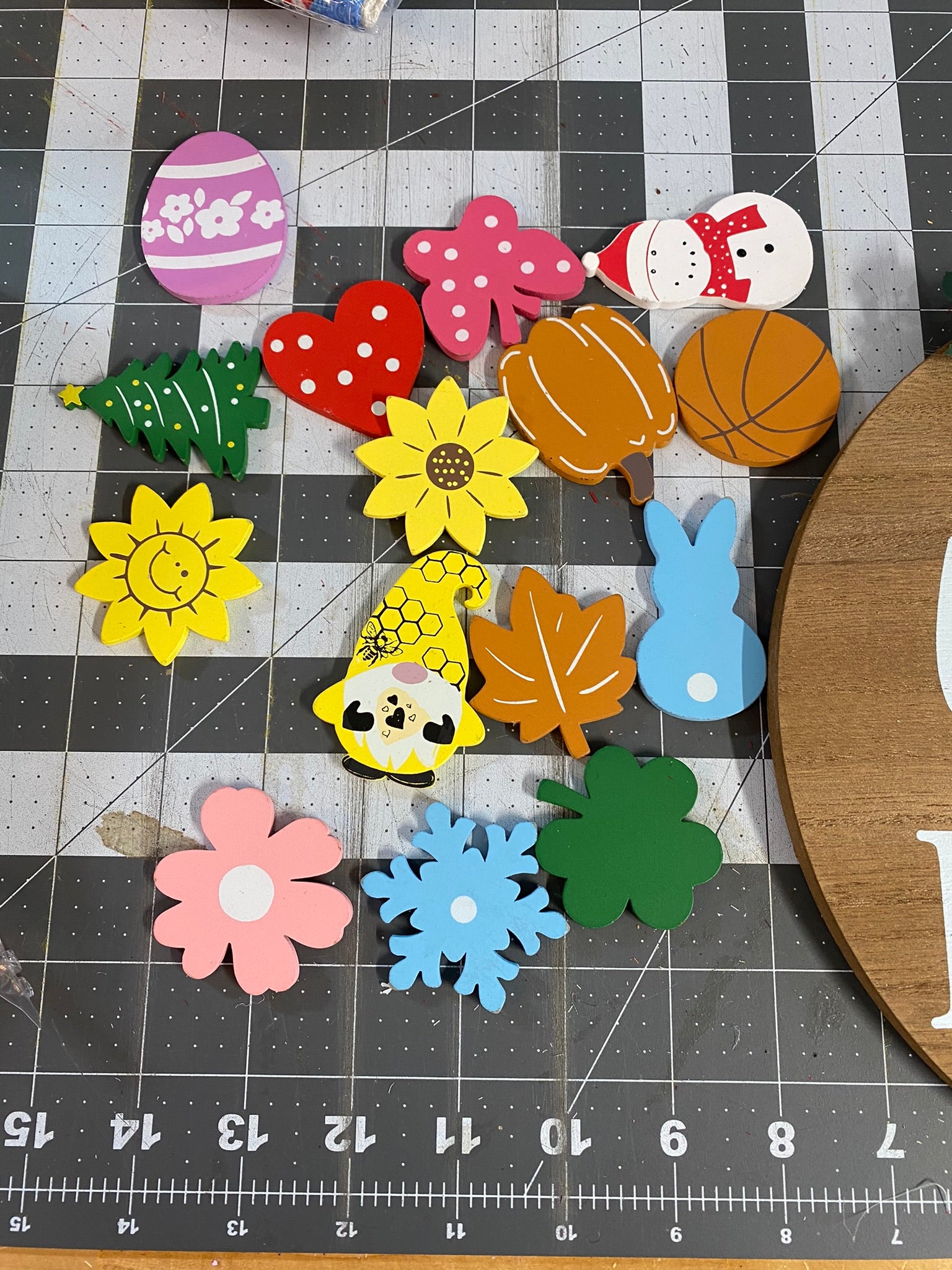 Beautiful welcome door interchangeable sign. Comes with several attachment that are magnet to change out on the sign. Create piece to be able to use all year long.
